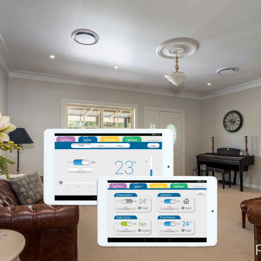 MyAir, it’s Australian for comfortable and in control. It’s a premium home air conditioning management system which allows you to have up to 10 zones and individual room airflow control as well as a touchscreen that is also an Android tablet. Interested in the MyAir system?